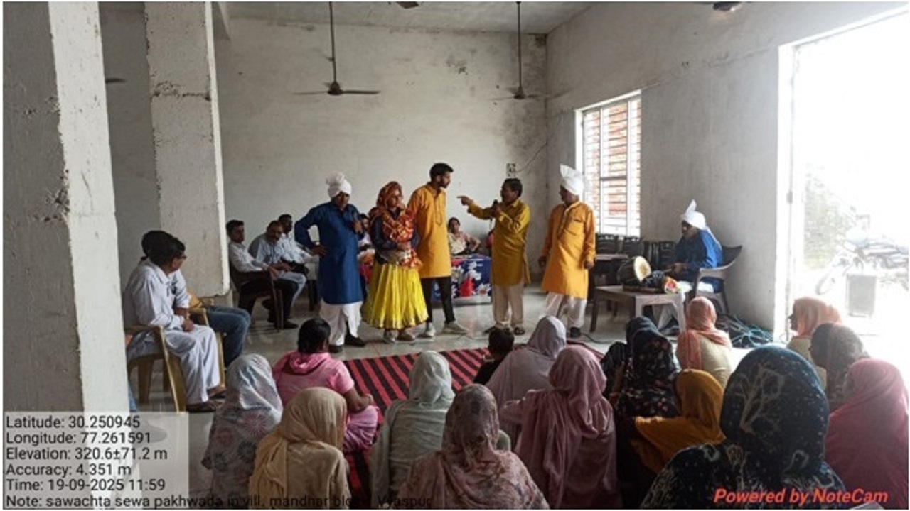 Awareness Drive through Nukkad Natak and Sarovar Sewa Divas under Sewa Pakhwada was conducted at Pond karnail ke ghr k pass in Village Mandhar, District Yamunanagar, on 19th September 2025.